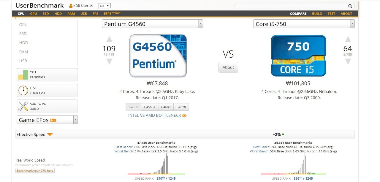 G4560은 11년전에 나온 인텔 1세대 750보다 2% 구리다.
