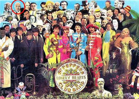 [비틀즈가 발표한 레코드 표지의 알레이스터 크로울리. 빨간 동그라미 안]