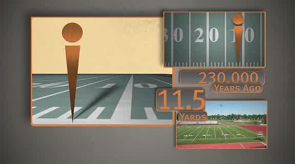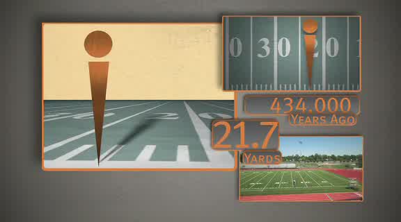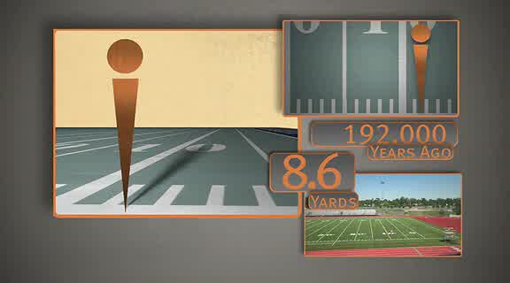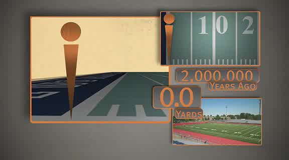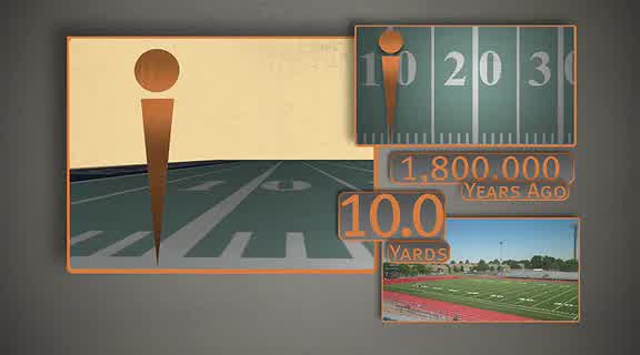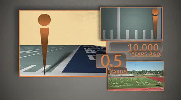 아래는 인류 전체의 역사를 풋볼 경기장 크기하고 비교한 것이다.